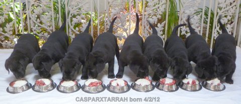 TARRAH This sweet ALL BLACK litter is in their forever homes! Caspar & Tarrah are Optigen Normal, OFA Hips/Elbows Clear/CERF yearly.